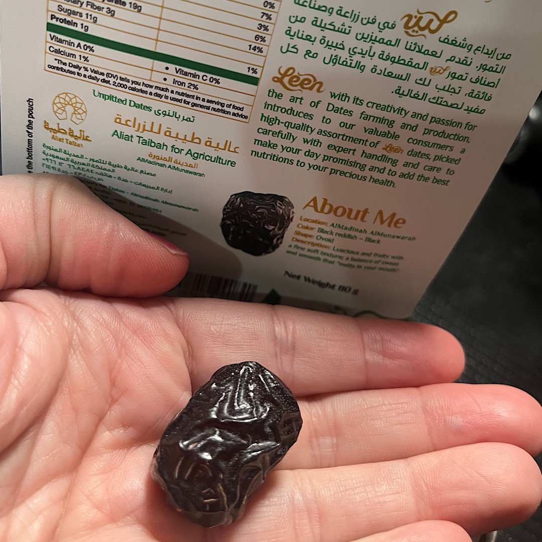 Hard to believe that a small fruit can travel halfway around the world into my mouth… I love dates, and a good medjool date is my favorite. Or so I thought. So as someone who occasionally suffers from anemia, I love incorporating dates into my diet for the iron. As someone who loves sugary candy, dates are the perfect food to compensate for those sweet cravings. I had never had an ajwa date. At first, the small size intimidated me. The pit-to-date ratio was more pit than fruit, but once I tried the date, the sweetness and texture surprised me in the best way. They were chewy and firm enough to have a great mouth feel, and also properly giving and moist. Each one turned out to be the perfect bite-sized treat. The package is gorgeous and provides information about the type of date itself, the nutritional information and the company information. These are highly specialty dates cultivated in a certain region of Saudi Arabia (Medina), so it’s more like buying a specialty imported cheese or wine than a simple fruit. In that way, the price seems reasonable. (Think of it like “champagne” technically only refers to sparkling wine from the Champagne region of France or the cheese from the caves of Roquefort.)