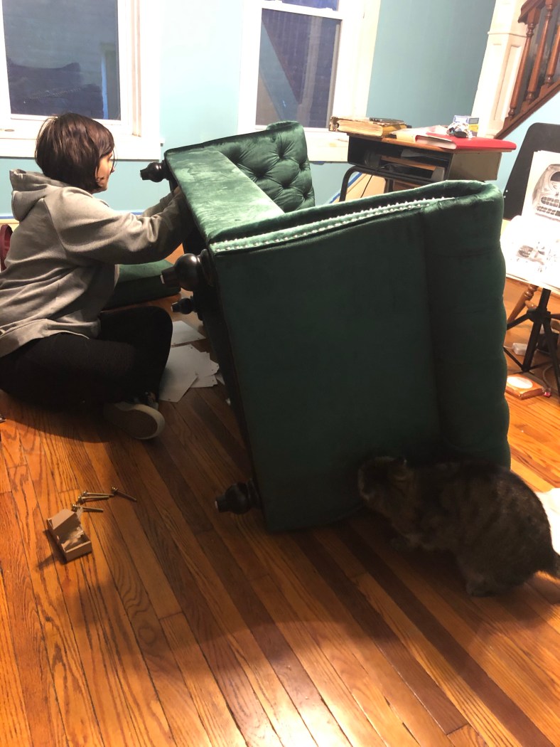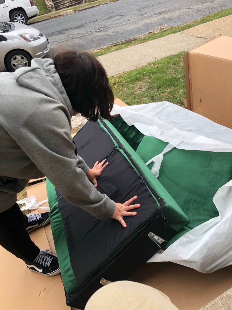 The new couch came from Target.com, thanks to a Black Friday online sale, and the teenager assembled it.