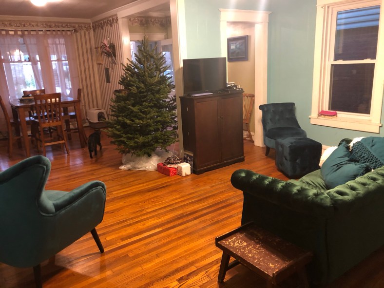 And finally we got the room done enough to serve as a backdrop for our holiday tree trimming party.
