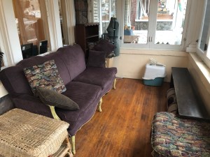 The living room was once our dining room. Our old couch is now on the sun porch.