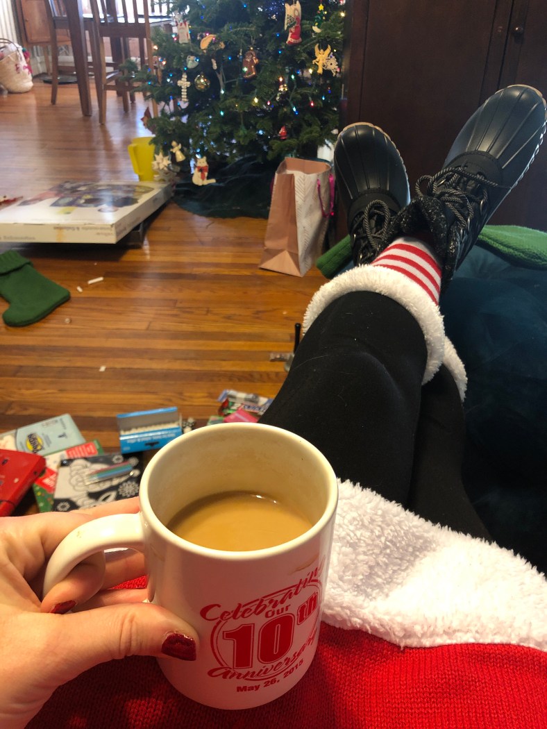 So I’m enjoying a cup of coffee, after trying to pick up all the wrappings, thinking about my friends far and wide that I miss.