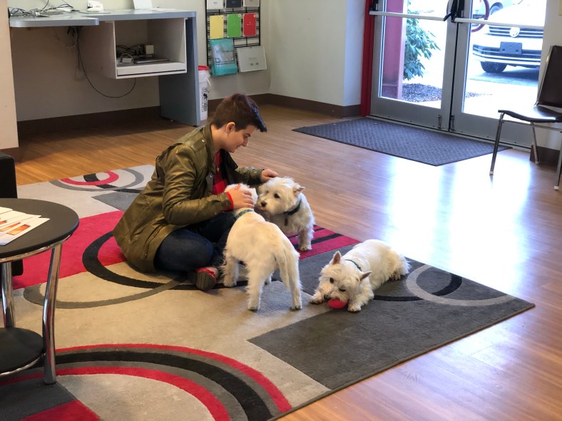 There was a boarding macaw that was very adamant about screaming. And an African Grey that talked quietly. Another bird that said “whatever.” Several that shook. I don’t know whether it was anxiety or fear. A lot of singing and a lot of squawking.