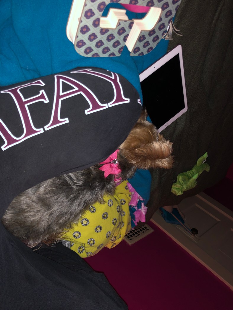 After a day of much laundry, dog-sitting (perhaps literally, if you take a look at the photo) and a church service to represent the office… Gordon might have gotten into my head.