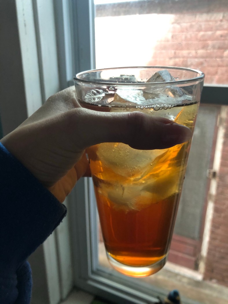 I’m sitting here with Nala, my Goffin’s cockatoo, and Oz, my teenager’s big, dumb 9-year-old cat who thinks he’s a teddy bear. I just had some ring bologna for breakfast and made myself the best glass of iced tea: