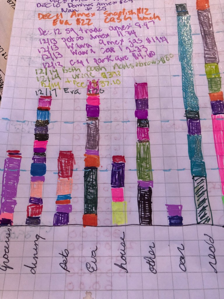 I keep one column for “cash” and one for “credit” above the graph to detail the spending.