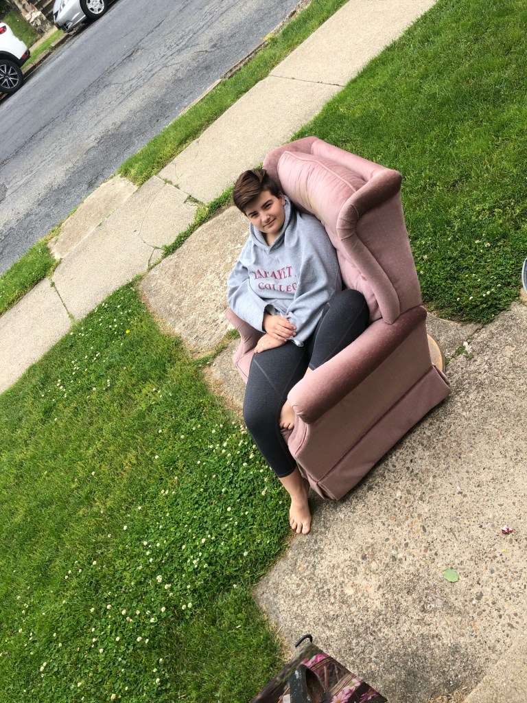 While they took the hutch to the teenager’s father’s apartment, she asked me to help her move her favorite recliner outside so they didn’t have to struggle.