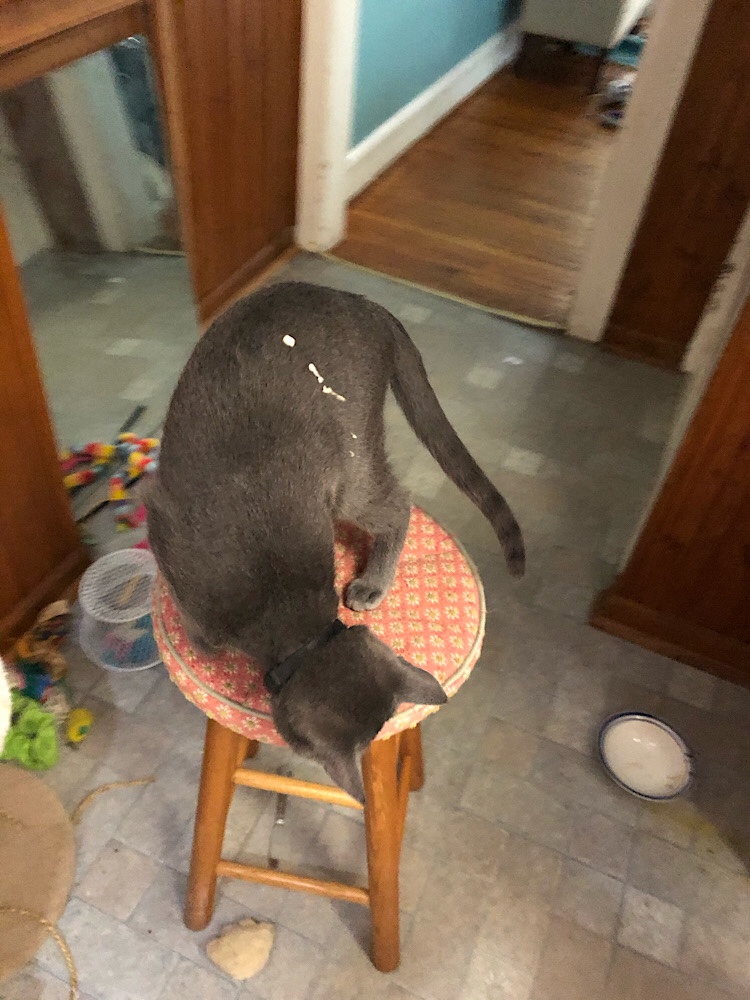At one point, she noticed us and started feeding him through the fence. And then he hid between the garage and the fence, but she keeps coming to check on him.