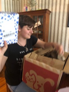 And I had some “presents” for her. Unbeknownst to her, a bunch of her packages came today while she was gone.