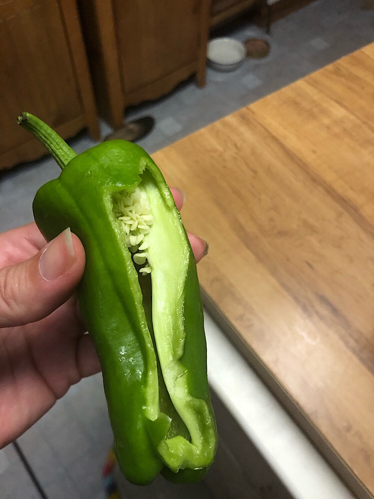 I forgot them— so by the time I retrieved them they were hot. The pepper had burned on one side and smelled fiercely like a jalapeño.
