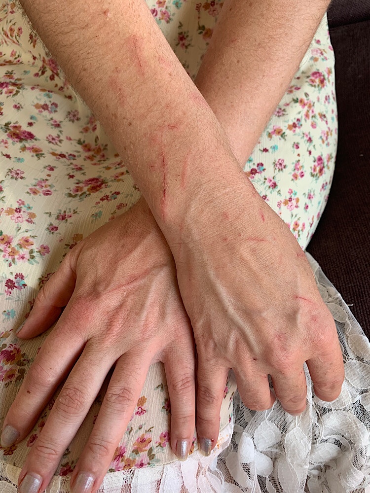 The assistant who took me to the exam room noticed my wounds and asked if I was there for the scratches. No, I said, showing him the puncture. “Cat bite?” he asked.