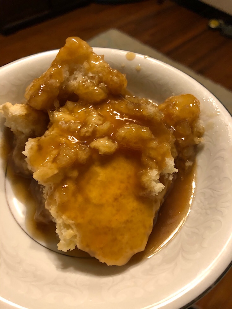 It’s not pretty but the sauce on the bottom turns into caramel and the cake just soaks it in.