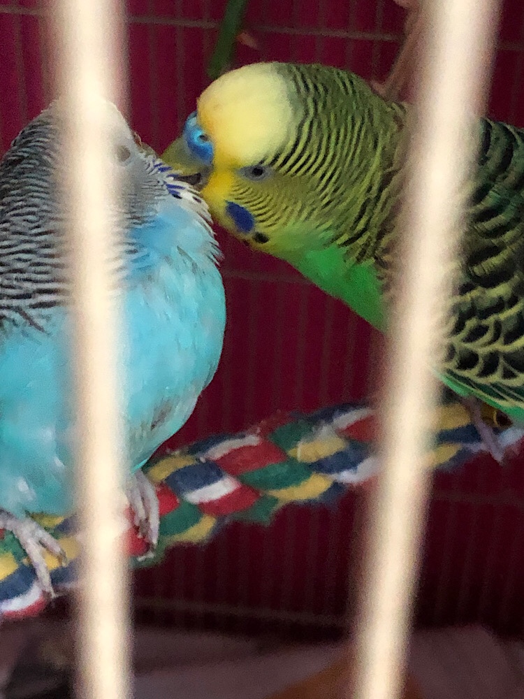 Boo is how free flying because she’s too stubborn to get in the small cage. But Mama and Papa seem much calmer.