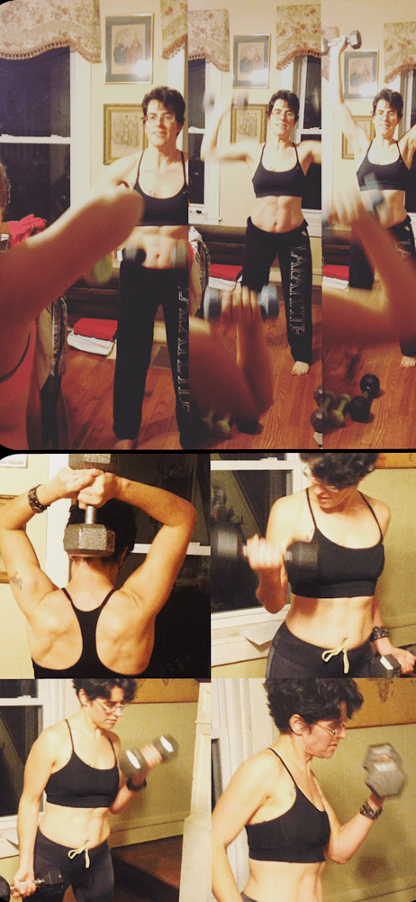 Yes, the shadow of a person lifting two pound weights with me is the now teenager as an eleven-year-old.