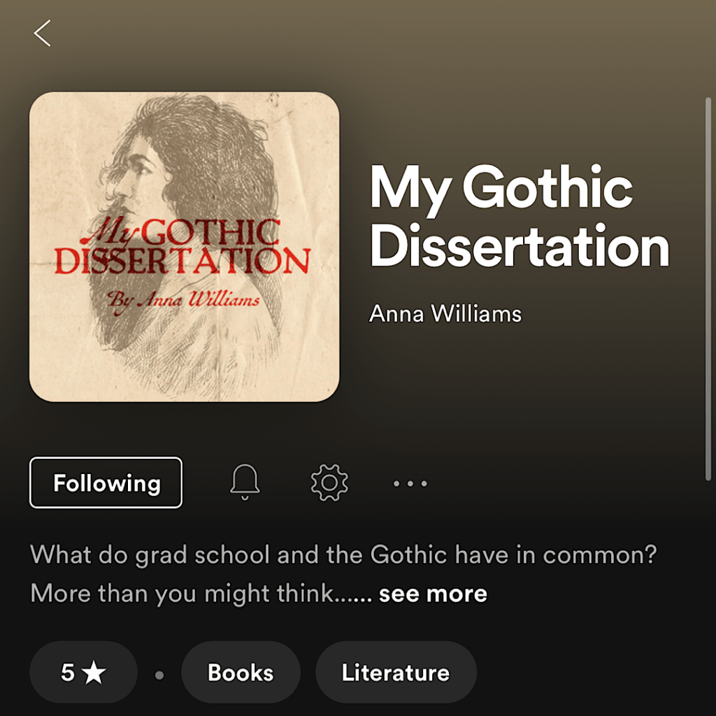 My belabored point is— I have read books in English and French and my nerdy little heart skipped a beat when I started listening to Anna William’s podcast, My Gothic Dissertation. If you don’t have Spotify or any of the other podcast apps, her website is here. Here is her curriculum vitae.
