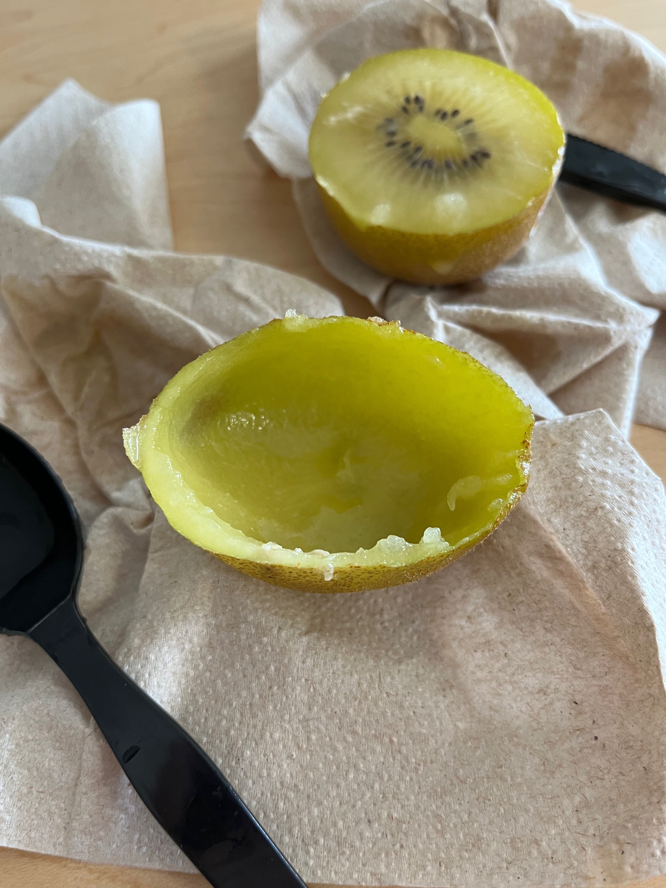 - 1:30 p.m.: golden kiwi. By the end of the shift, I had another 8 ounces water.