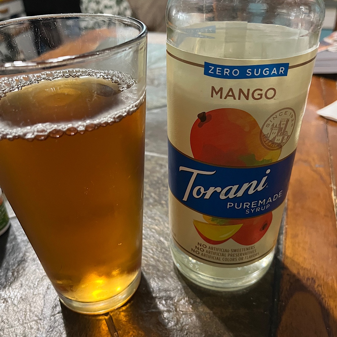 - 2:30 p.m.: about 16 ounces unsweetened Earl Grey iced tea with Torani sugar free mango syrup