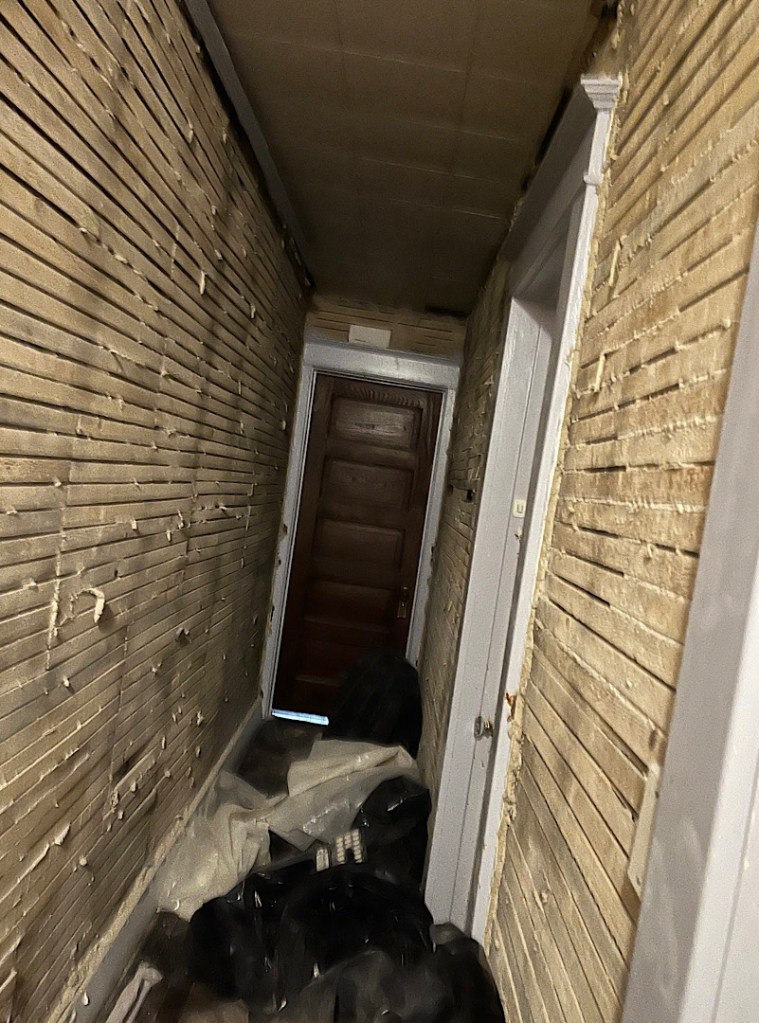 At home, Eva is working hard on removing the plaster from the walls of the hallway in our 100-year-old house.