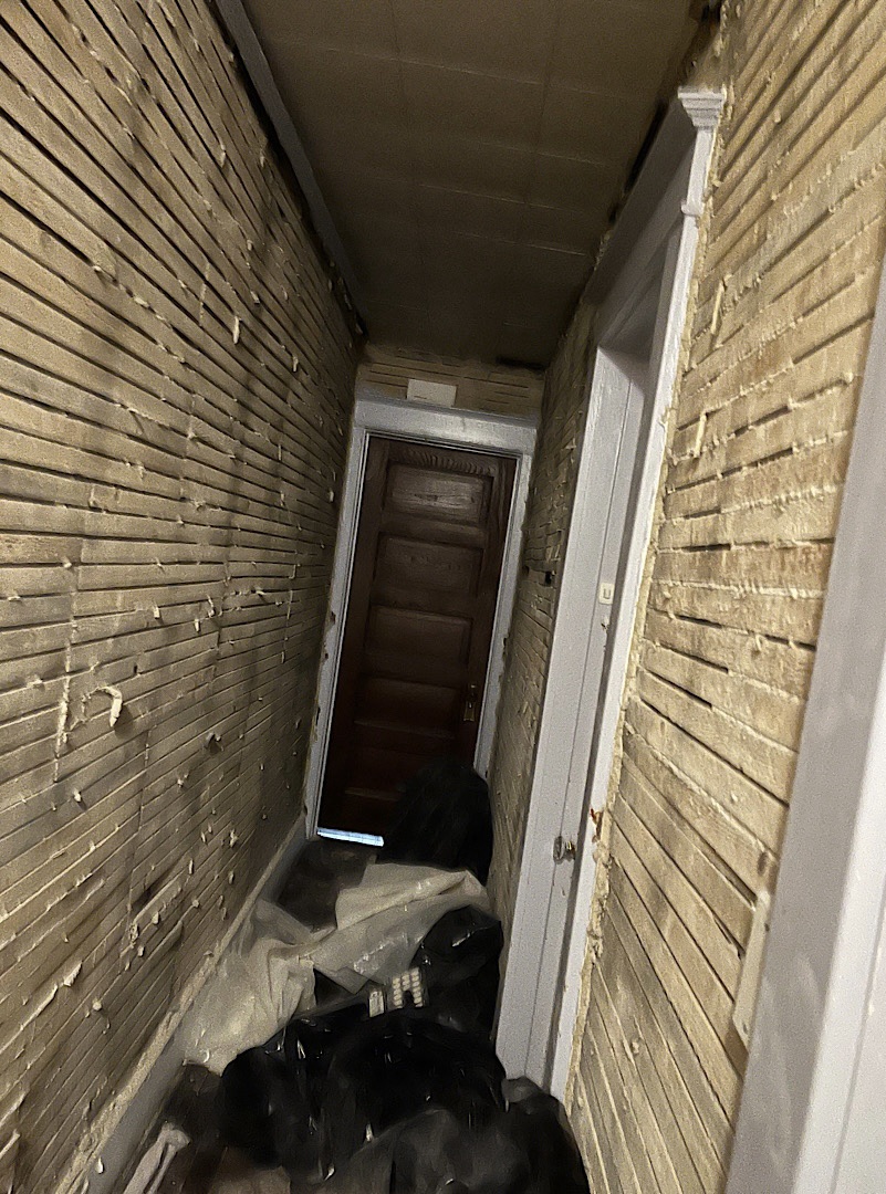 At home, Eva is working hard on removing the plaster from the walls of the hallway in our 100-year-old house.