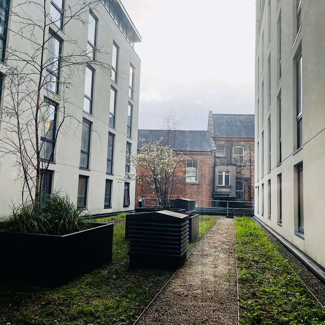 We are staying in the Hyatt Centric, The Liberties, Dublin. My room has a pod-fed espresso machine, an electric tea kettle, a selection of teas, unrefrigerated milk in a glass jar, and a bottle opener. I wondered if I needed it for something– the bottle opener– but then I realized:
