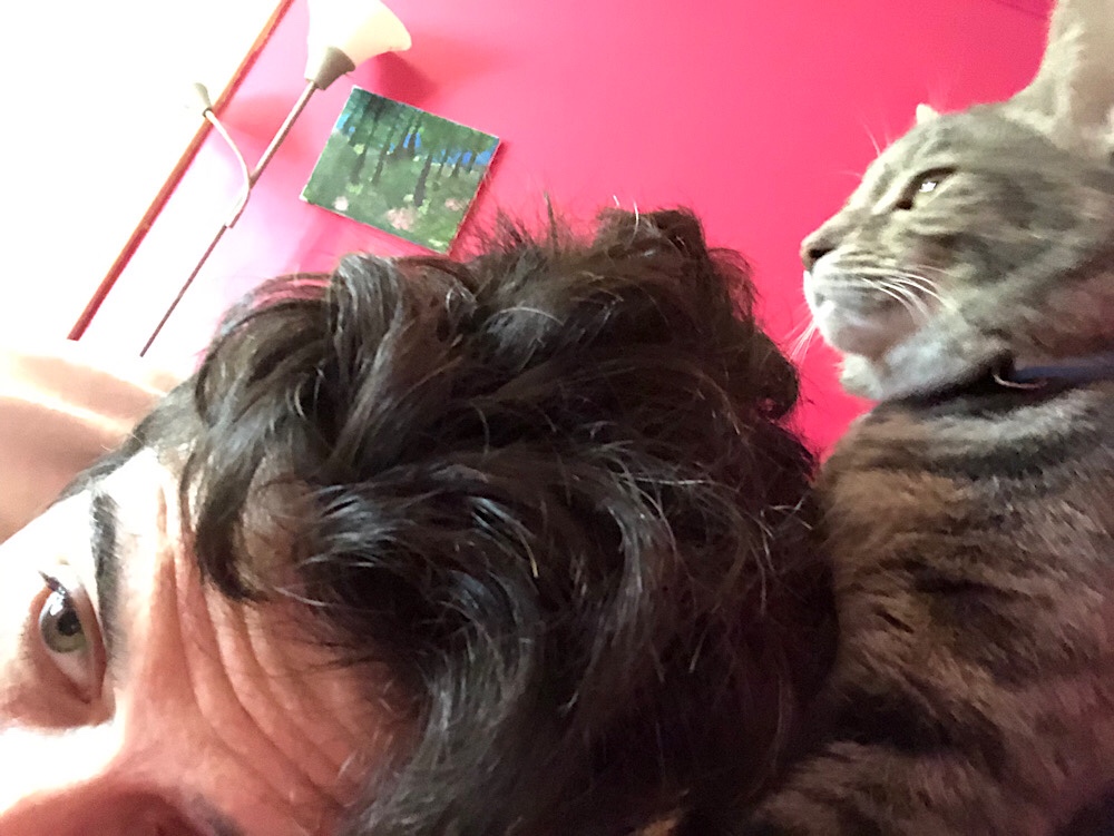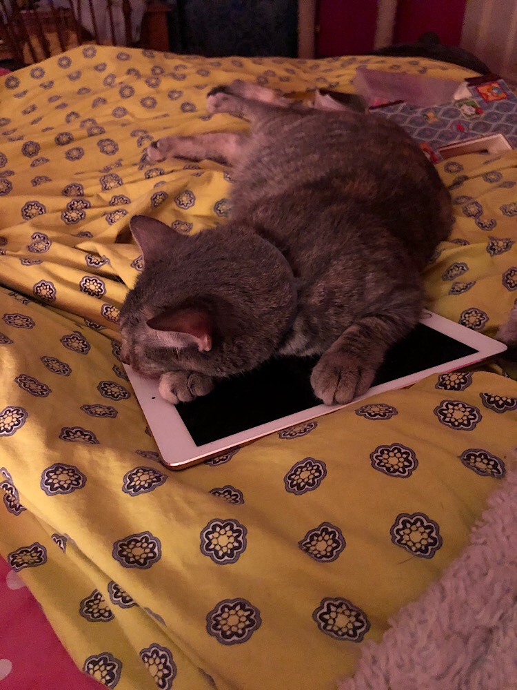 She is a total lap cat (until something makes her feel threatened or stressed), gets very jealous of electronic devices, and will steal your pillow and sleep on it.