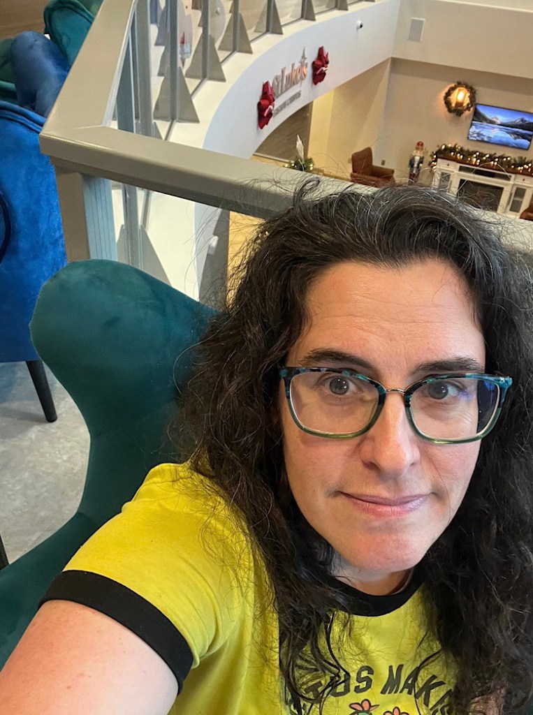 When I ended up in the ER for stitches in March 2023, after the fall that left the scar under my lip, I noticed the Lotus waiting room was FULL of my chair. Half of them in the color I had purchased, half in St. Luke’s blue. I had been admitted to an upper floor, perhaps the third. I looked down upon the chairs as I headed for the door.