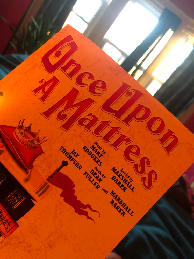 Today the teenager and I went to see “Once Upon a Mattress” (the princess and the pea musical) at a fairly small local high school. The first thing that shocked me was paid adult musicians in the pit. It’s a high school play. Why aren’t there high school musicians? Isn’t it cheating to use paid musicians?