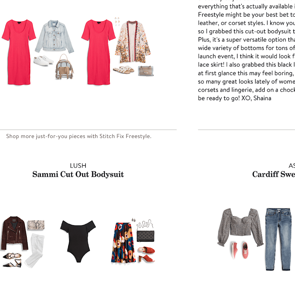 I had interacted with the quizzes for more than a year. I clicked on photos for my inspiration board. I ordered items from Freestyle and selected items as favorites for later. In the beginning, the hits and misses I assumed were part of the process. I signed up for the annual style pass ($50) so I no longer had to worry about styling fees if I kept nothing.