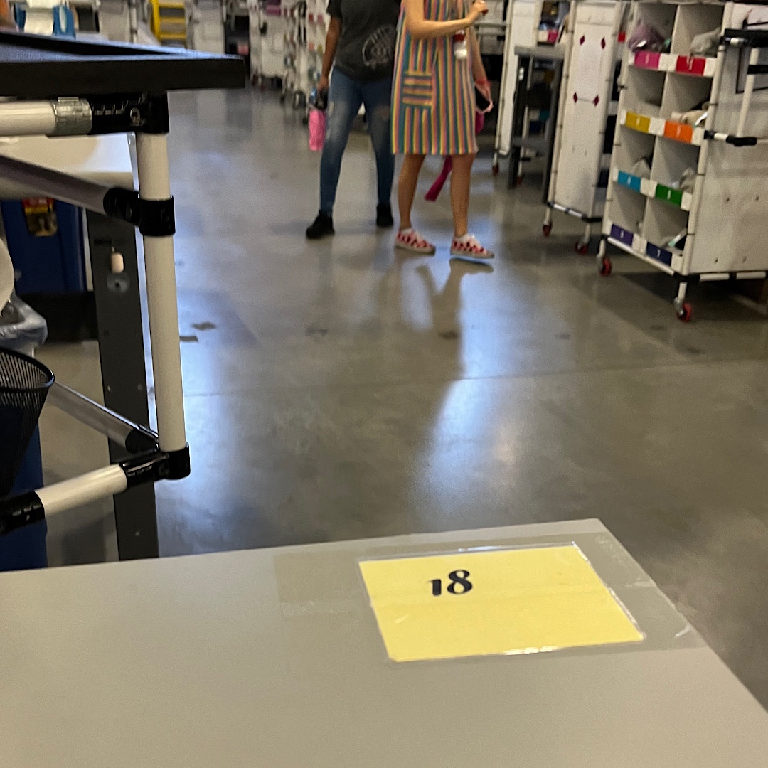 When I first received my accommodations, I was placed at table 18 at the back of the line so the support team could leave me all the boxes coming out of the refix department (work that needed to be done over for one reason or another) and then share that work with anyone else who might have similar needs.