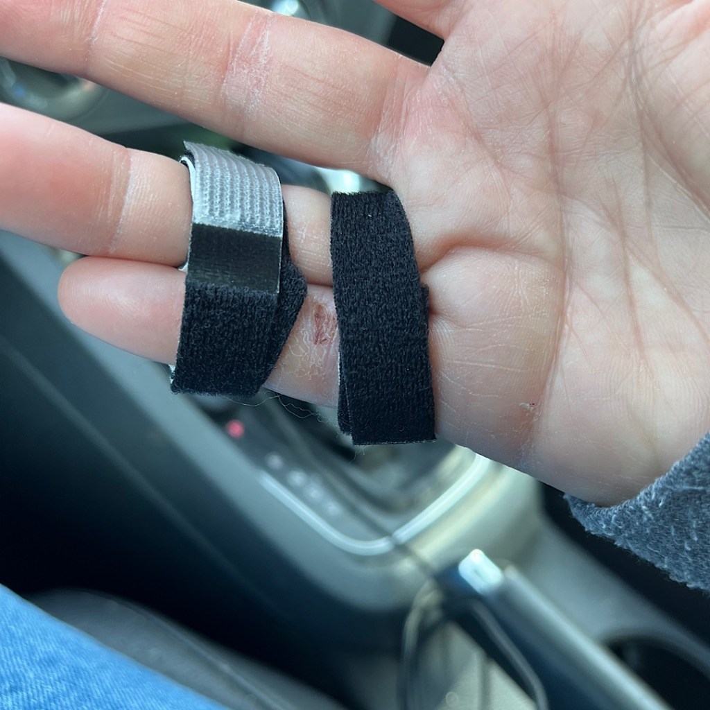 Instead, he wrapped my ringfinger and pinky snugly together with some velcro so my ring finger can be the new splint. “Wherever the ringfinger goes, the pinky tags along,” he said.