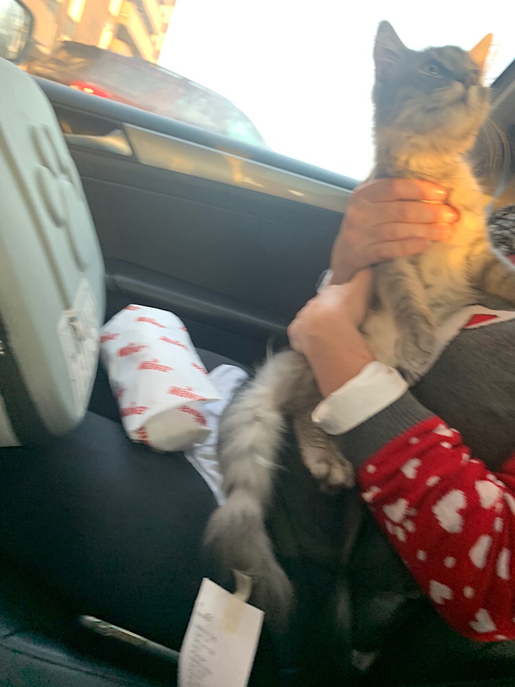 But the biggest moment of my Christmas Eve was finally escaping the clutches of Covid enough to deliver Fenrir of the Norse Pride aka Fern aka Fern-Edie now to be Edie to her FURRever home through Feline Urban Rescue and Rehab. The fact that one of my favorite people adopted her certainly made it even better.