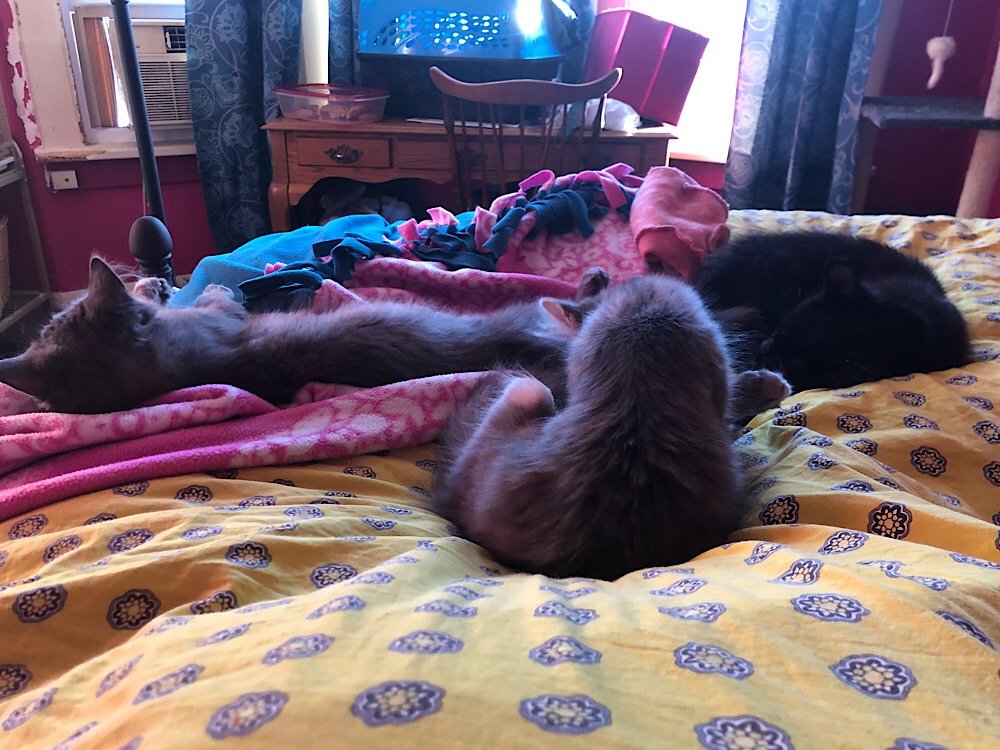 Upon my return, we crated seven kittens into two crates to take them to visit our cat foster godmother for vaccinations, dewormer and claw trims. The teenager is pet sitting for her as of Saturday.