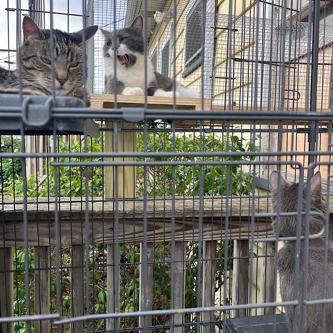 And the “tube” to the outdoor kennel the teenager built for the cats has been popular.
