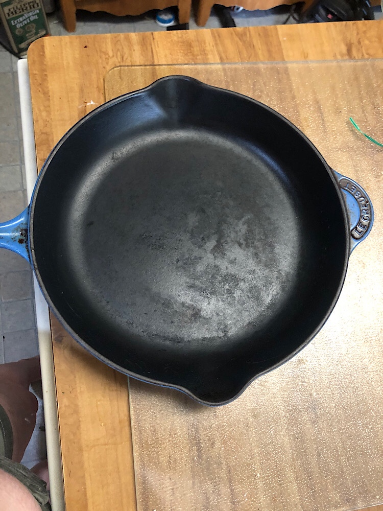 Last week, my Le Creuset skillet affectionately known as Baby fell off the kitchen counter and the handle snapped off the pan.