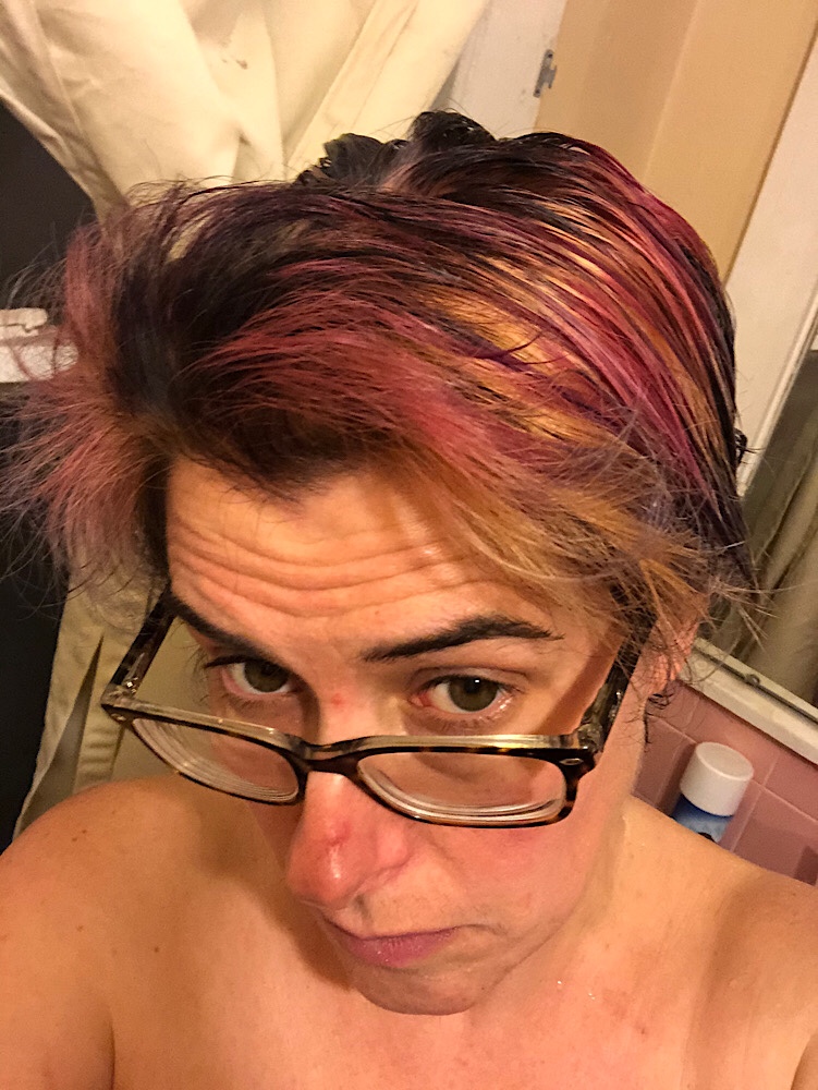 Anyway. So after all that and a meal at Sonic, the teenager and I came home. She put the groceries away. We wrapped some holiday gifts. And finished our hair.