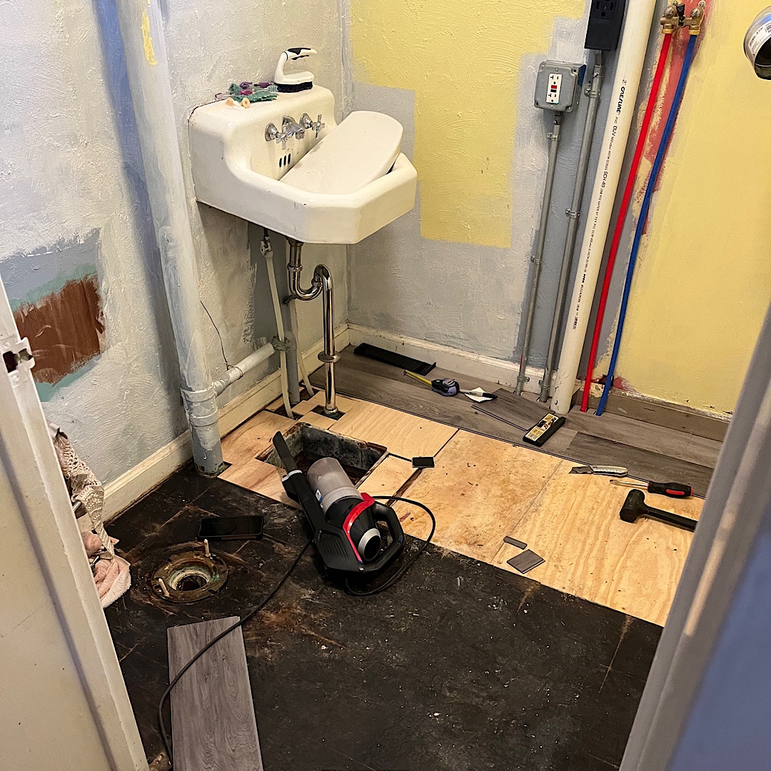 My washer, dryer, toilet and floor have been removed from the downstairs bathroom and I have a burning, burning toe.