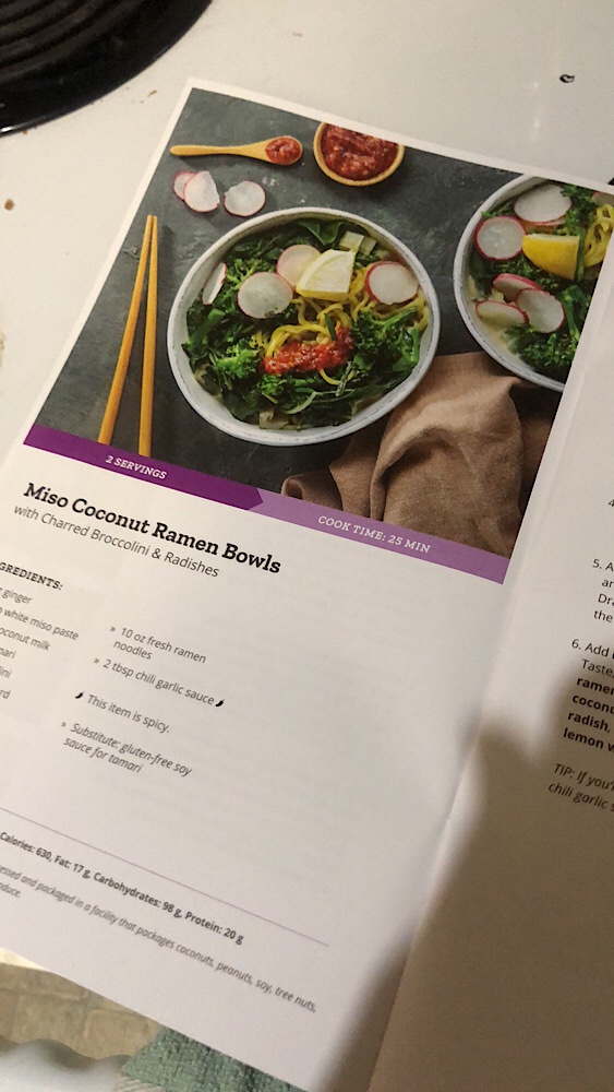 Next, let’s briefly do a Purple Carrot Update. Today I prepped the matcha overnight oats and made the ramen bowl. (Video of matcha prep here.)
