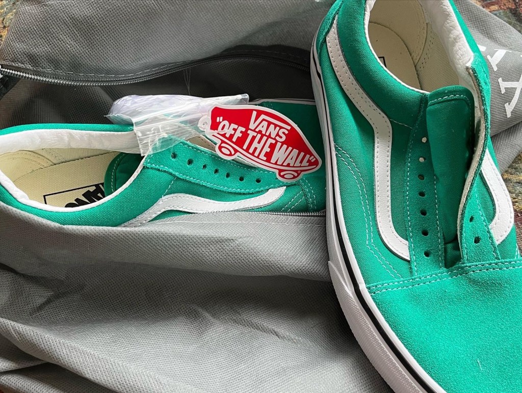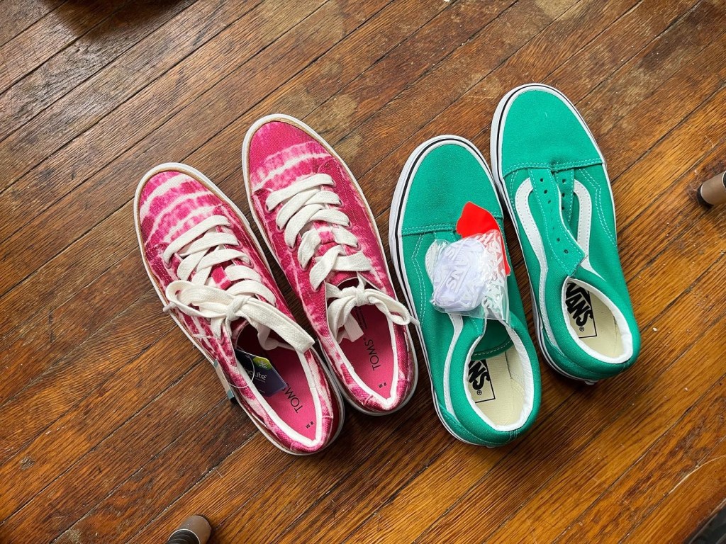 But Joan did manage to find three pairs of shoes for me—pink Toms, green Vans and a laceless DV by Dolce Vita sneaker— and one pair of old skool Vans high tops with a zipper for the teenager.