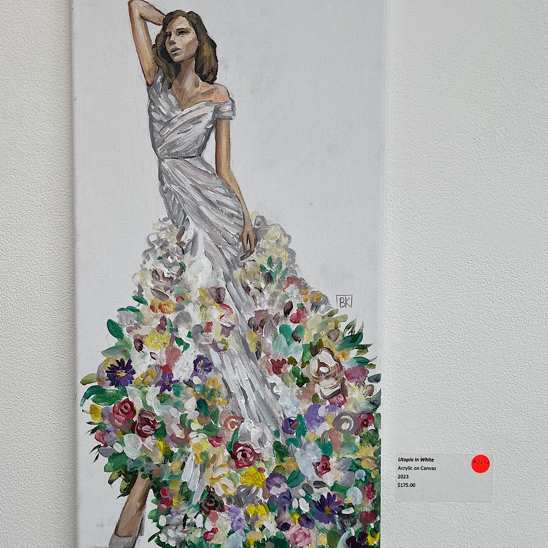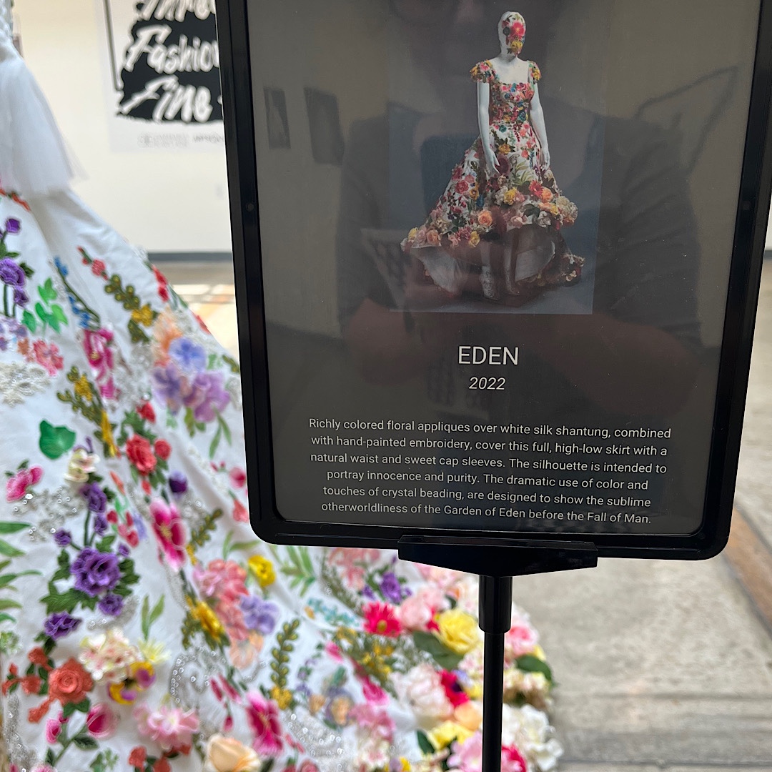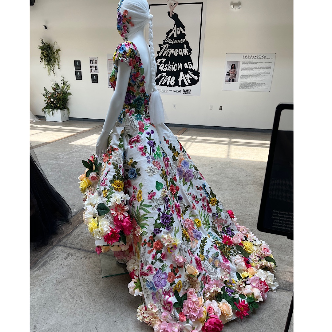 Next, we headed to South Bethlehem’s Banana Factory. At their exhibit, featuring the work of local designer Barbara Kavchok. The work blew my mind, and the paintings and fashion illustrations that accompanied the dresses… well, if I wasn’t losing my job I would have inquired how to obtain one or two. The flowers. The ruffles. The lines. All just flabbergasting.