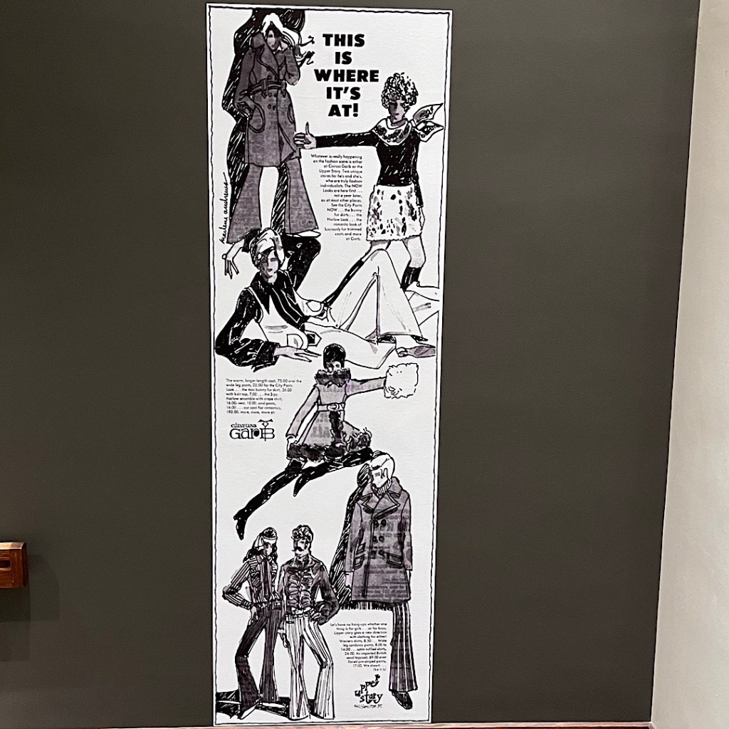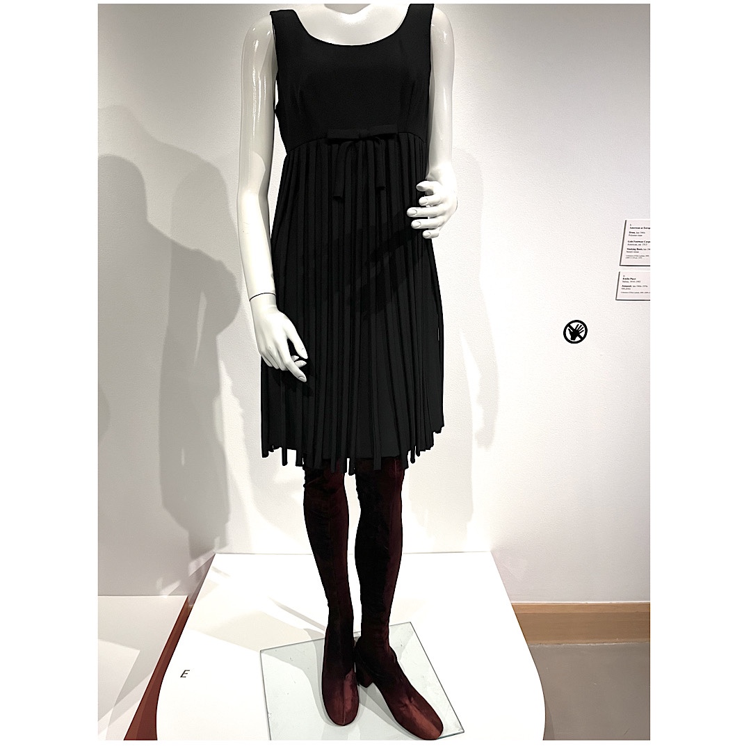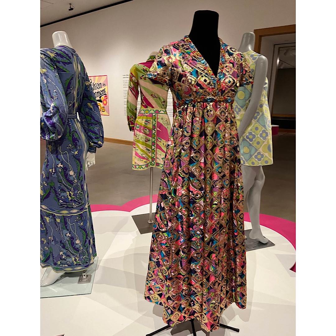 Gayle wanted to see the art museum exhibit because she had some of those clothes from the Sixties, and I wanted to see it because I love post-World War II history and I have a minor obsession of fashion in the artistic sense. If you’ve read my Fashion and Fiends novels, this makes sense.