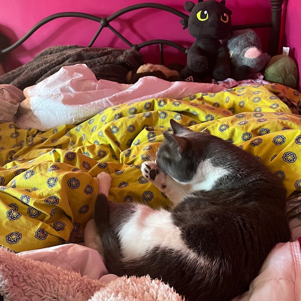 4. I spent some more time with my cat, Fog. We normally use a “crate and rotate”-style system for all the animals. For the last year, my boy Fog, our old tripod Opie and the cat the rescue gave up on, Canyon, have been in my room. We decided to let them free roam and this meant I got to spend some time during my long work days with my man, Fog.