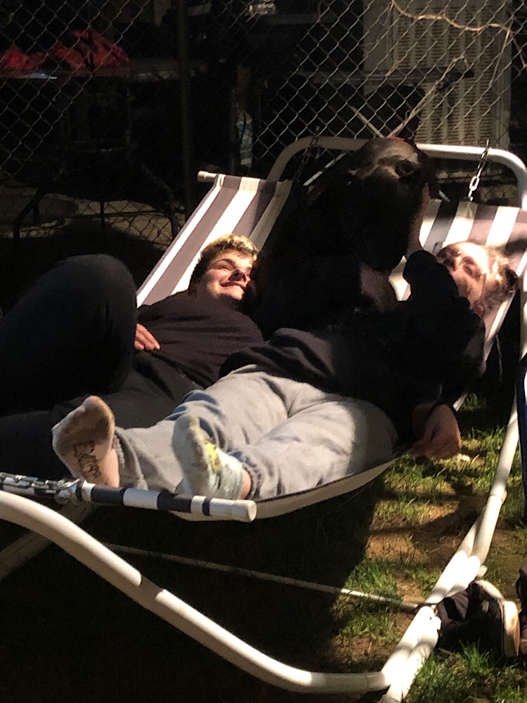 The food (and cocktails) were delcious and then we spent some time at Joan’s house, where he partner learned, apparently for the first time, that the Teenager is/was a musician. Discussion ensured of her experiences playing low brass and the differences between a euphonium and a baritone. Some old marching band videos were shared, and one thing led to another and suddenly the two of them had a trombone.