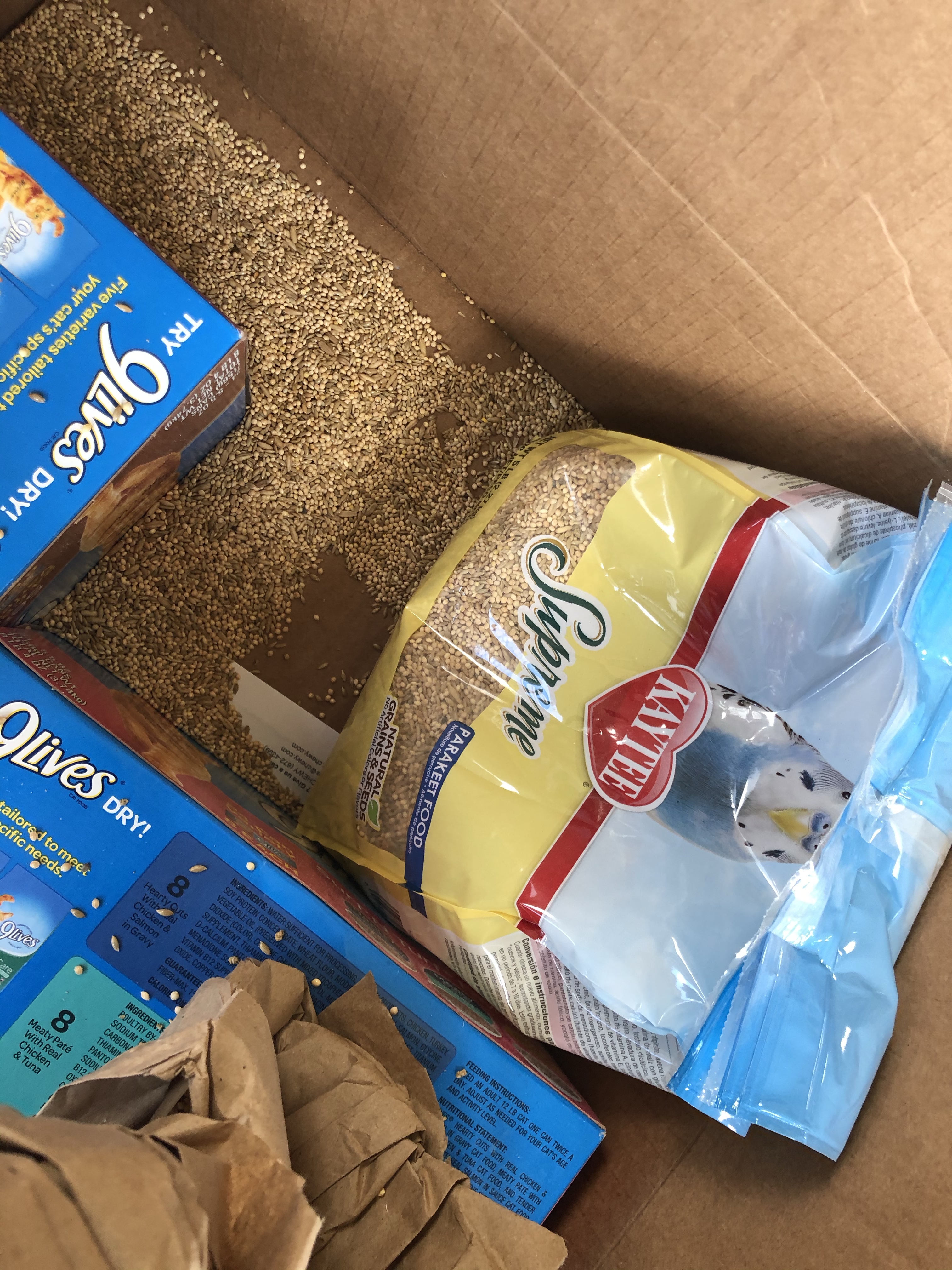 Additionally, I ordered one of her favorite toys from Chewy.com. And parakeet food. Cat food. And a new treat.
