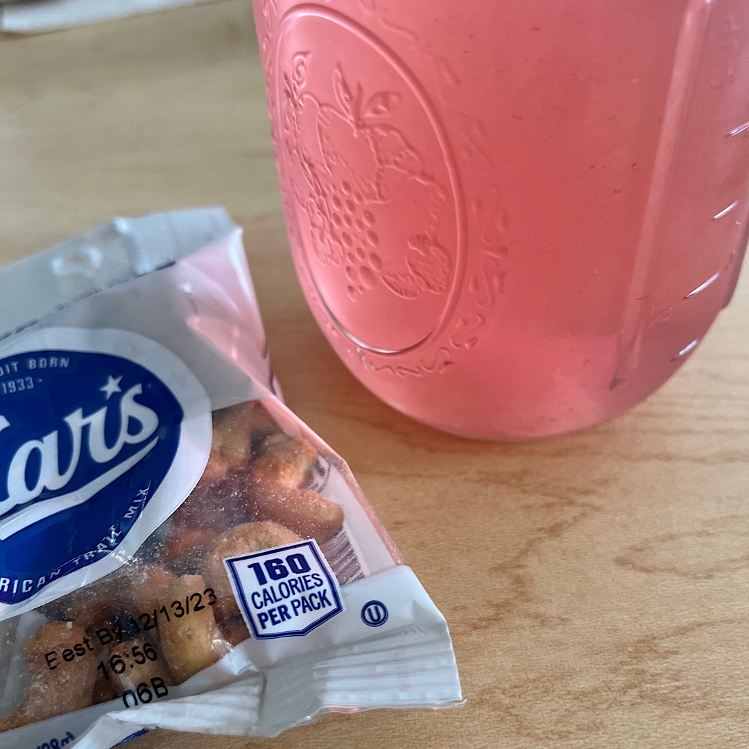 And last night, after a day of decent eating, I added on an extra 500 calories of a peanut chew-style candy, gin and juice and freeze-dried fruit that I didn’t put on the app.