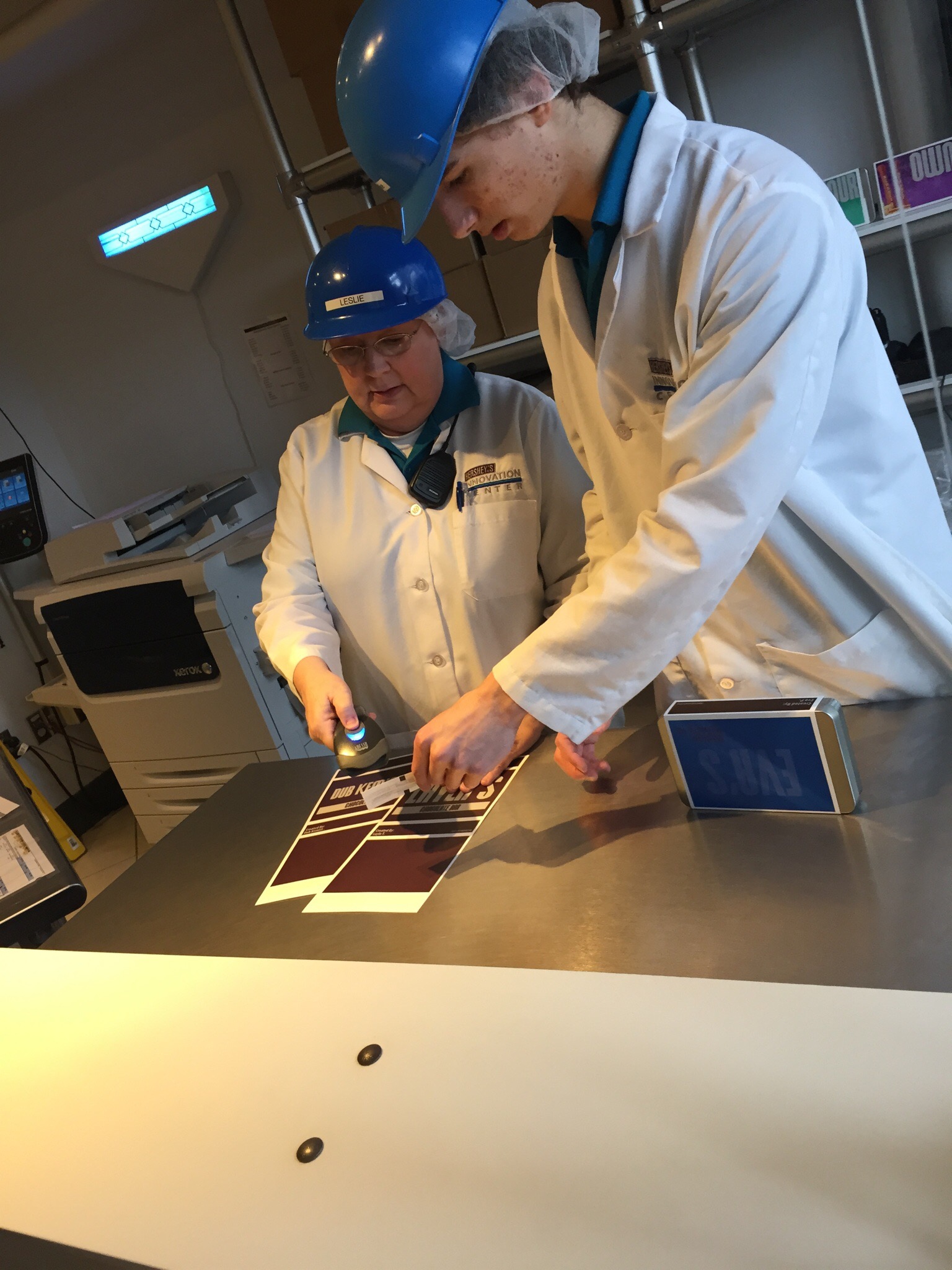 While it cooled and hardened, you designed the package. It was printed and a staff member boxed your bar in a Hershey tin and used your package as the outer sleeve.