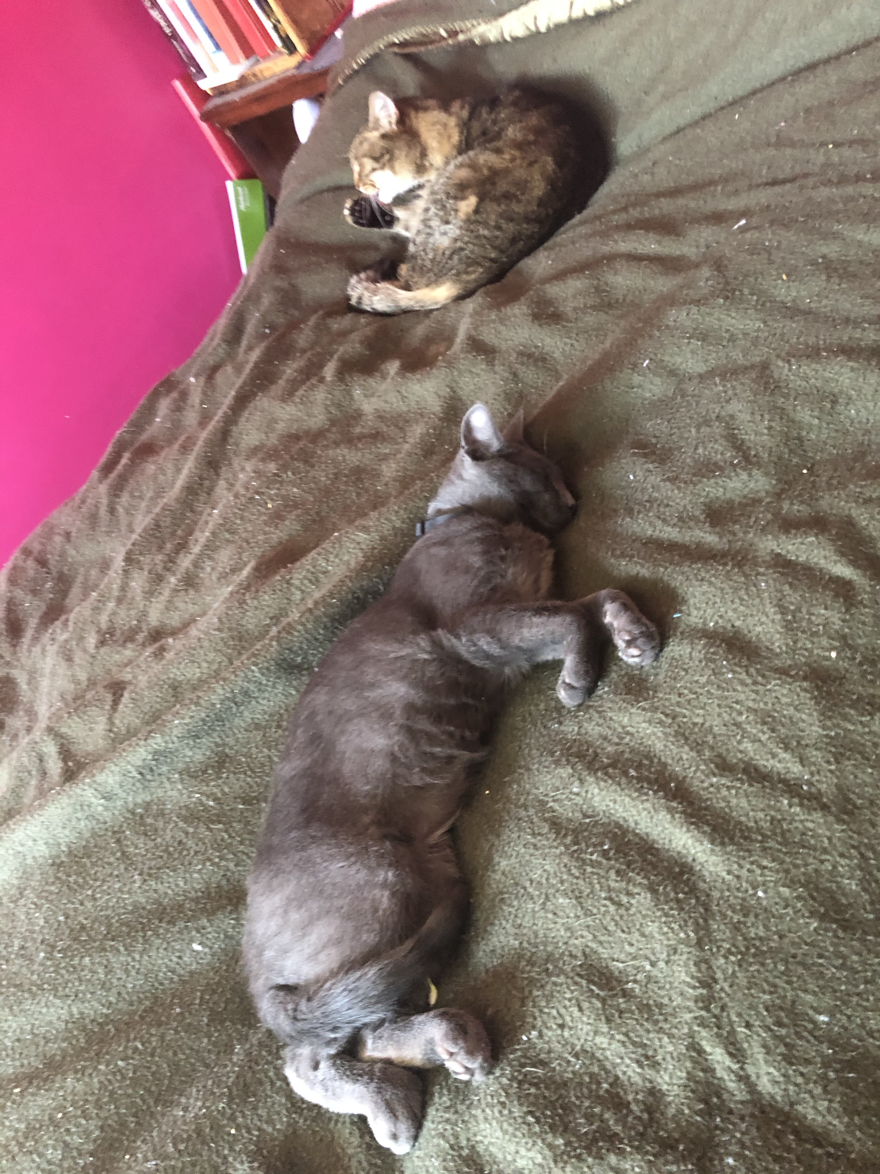 Fortunately, the cats like the bench there too. That’s 3-legged Opie in the photo.