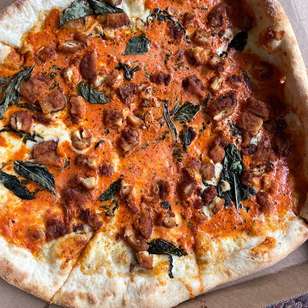 I ordered a chicken pizza with vodka sauce from Nicolosi’s Pizza in Forks Township. It was a custom pizza and I told them to “put whatever on it to make it pizza-y.” They added fresh basil. It smelled amazing. The teenager was picking it up at 2:45 p.m after work.