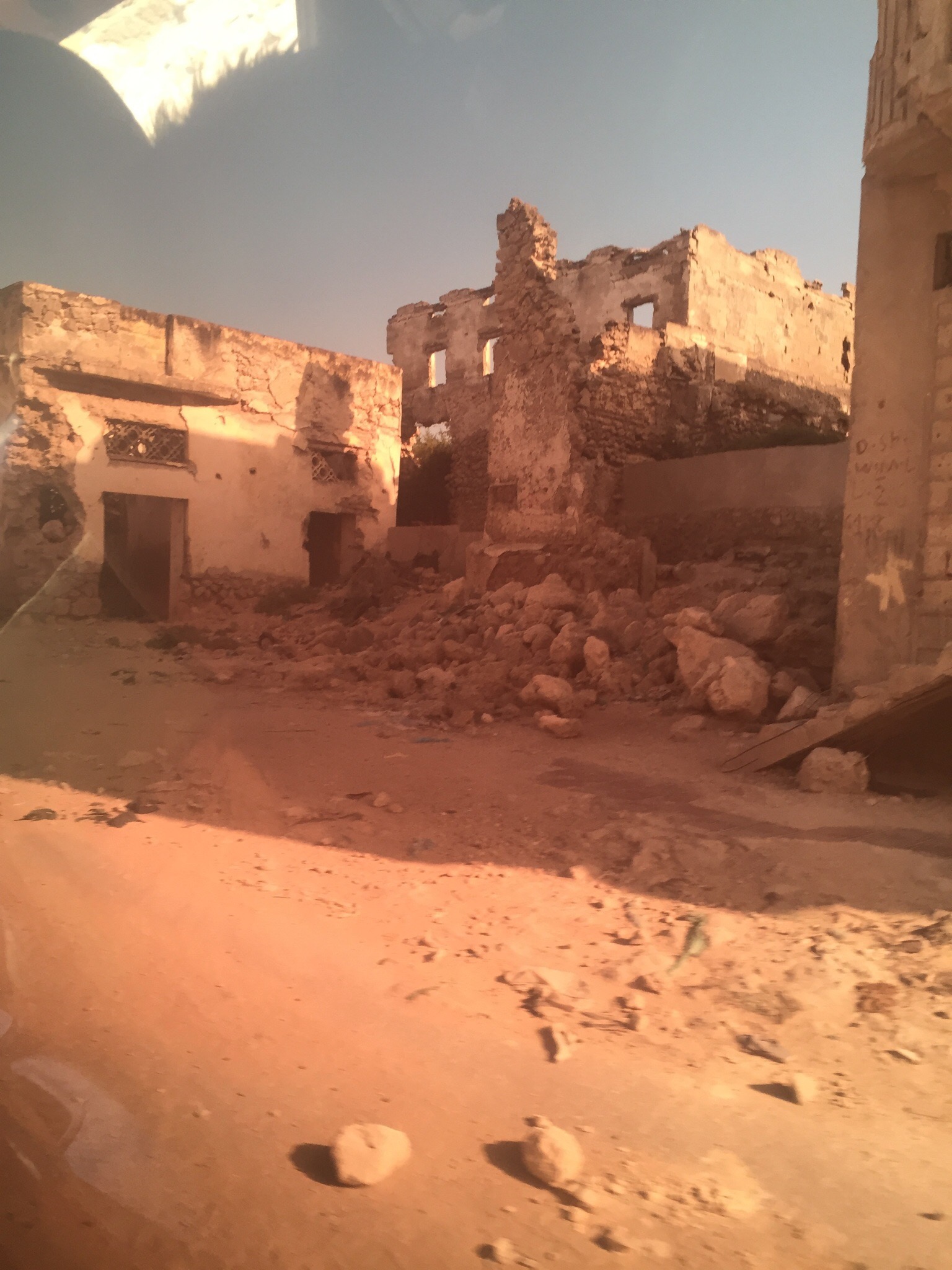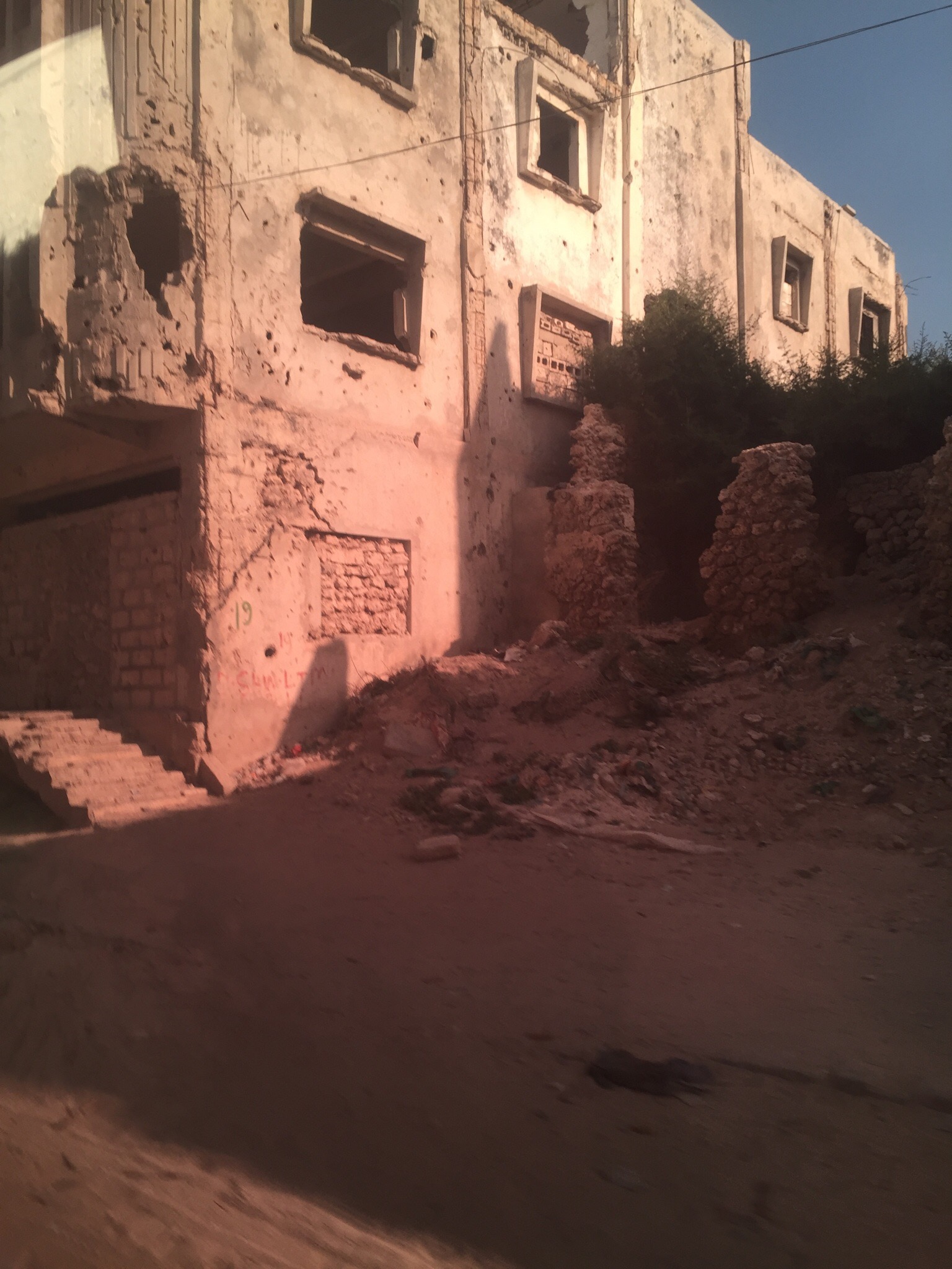 Even what used to be embassy row… Now protected by barbed wire and suicide bomber walls because peacekeeper soldiers sleep in the wreckage of what used to be the embassies.