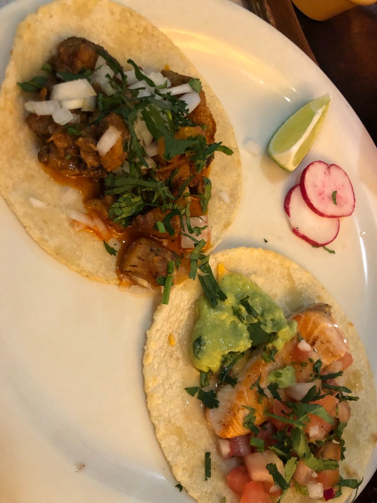 At Park Avenue, Nan indulged in some meatloaf and ham. I got the pickled Brussel sprouts, liver wurst, bacon maple potato salad, cranberry horseradish, and violet candy. And crab stuffed flounder we had for dinner tonight.