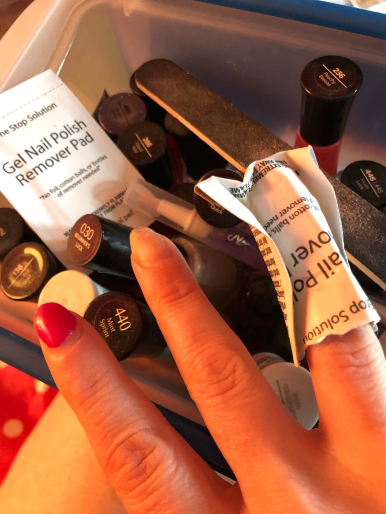 I came home and put the groceries away and got ready to leave for my friend Beth’s house, formerly Nails by Bethy at Hyperion Salon. She recently started a new career in commercial insurance (I think) and so won’t have time or stamina to maintain my fingers and toes.