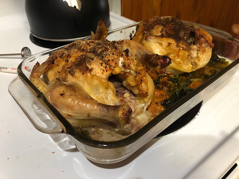 4. Cornish Game Hen. I seasoned it, used a little smoked flavor, and cooked it in my chicken bone broth, diced carrots, and kale. I didn’t care for it. Too much work to get the meet off the bones. Fog loved what he stole.
